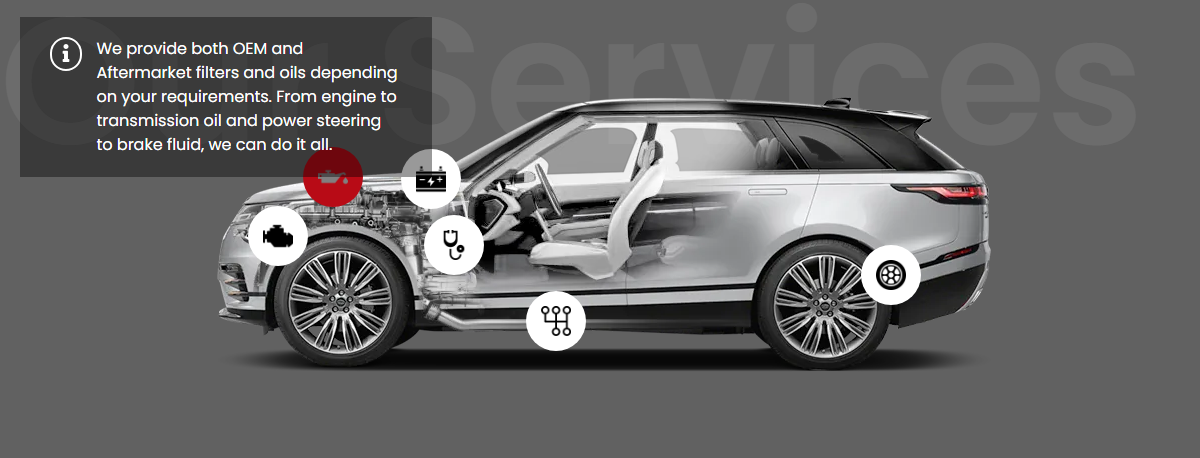 We provide both OEM and Aftermarket filters and oils depending on your requirements. From engine to transmission oil and power steering to brake fluid, we can do it all.